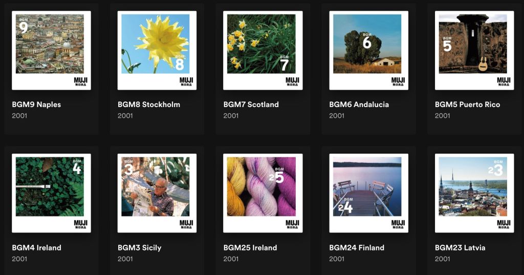 MUJI 無印良品認為,為營造門市「簡單、愉快的好感生活」的氛圍,音樂是不可或缺的重點要素。自 2001 年以來,他們已經訪問世界各地 16 個國家和地區,去尋找當地音樂家表演的音樂,目前已發行 24 張 CD,共 300 多首原創樂曲,期待顧客能藉由音樂與當地生活產生共感。